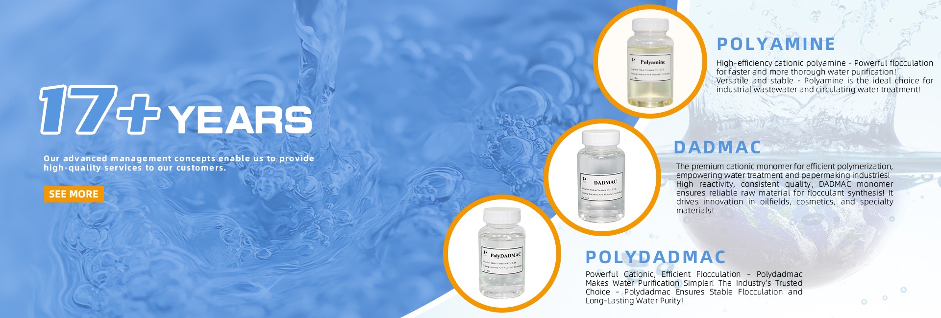 Productos principales:Productos químicos para tratamiento de agua, agentes de impresión y teñido textil, aditivos químicos diarios, agentes de fabricación de papel, intermedios químicos